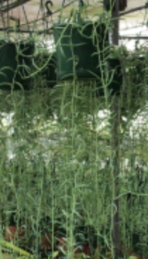 Senecio 'Fish Hooks' (Senecio radicans) is a flowering succulent plant native to South Africa. It is a hardy and easy to care for houseplant with plump, blue hued, banana shaped leaves that grow in a trailing nature. It sprouts white, small cinnamon scented flowers once a year, even when kept indoors.